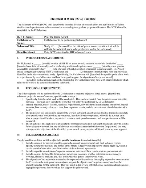 SOW Template Free Word Template Project Management Templates
